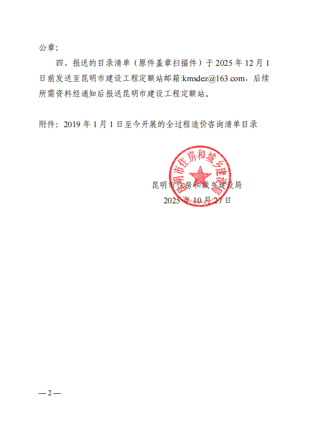 昆明市住房和城乡建设局开展施工阶段全过程造价咨询监管调查工作的通知